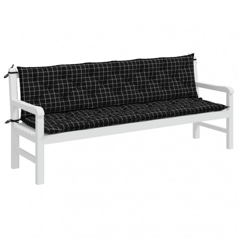 Cuscini Panca da Giardino 2pz a Quadri Nero 200x50x7 cm Tessuto