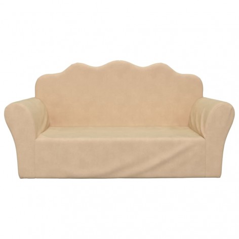 Divano per Bambini a 2 Posti Crema in Morbido Peluche