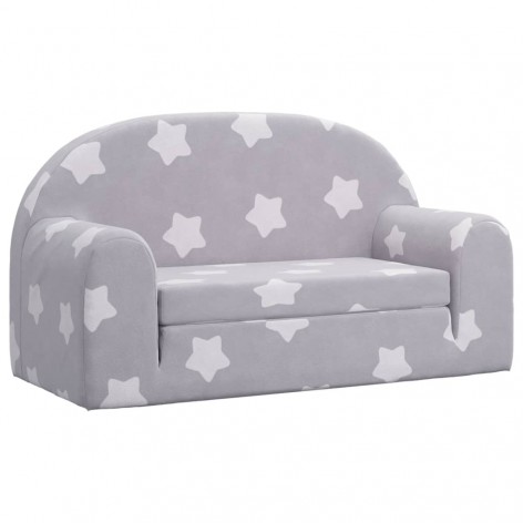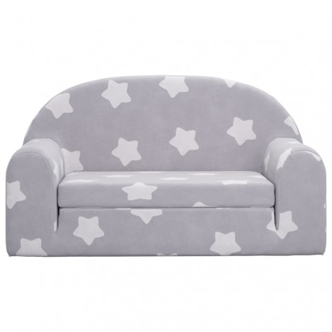 Divano per Bambini 2 Posti Grigio Chiaro Stelle Morbido Peluche