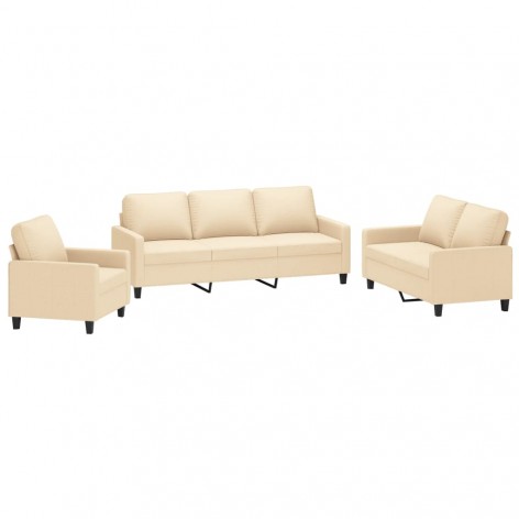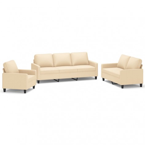 Set di Divani 3 pz con Cuscini Crema in Tessuto