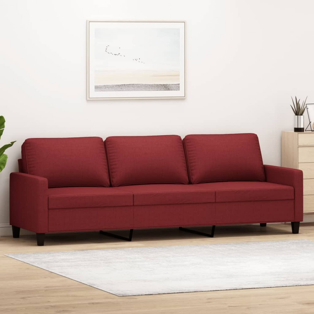 Divano a 3 Posti Rosso Vino 210 cm in Tessuto