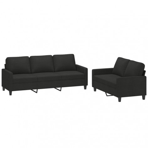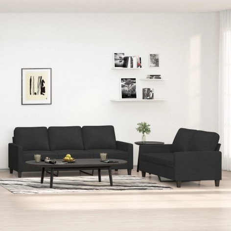 Set di Divani 2 pz con Cuscini Nero in Tessuto