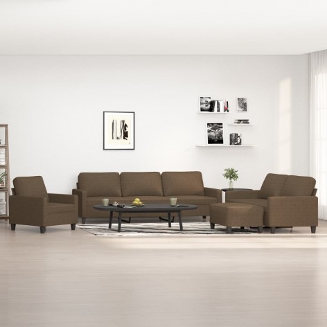 Set di Divani 4 pz con Cuscini Marrone in Tessuto