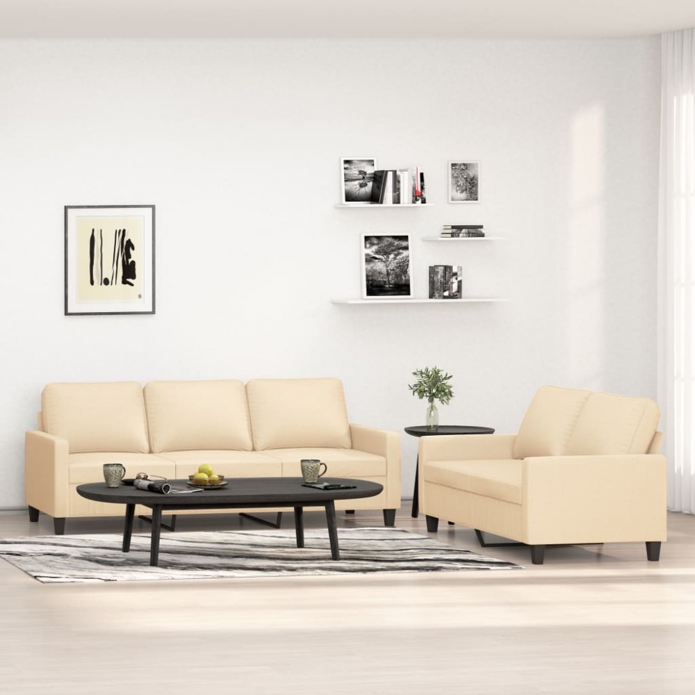 Set di Divani 2 pz con Cuscini Crema in Tessuto