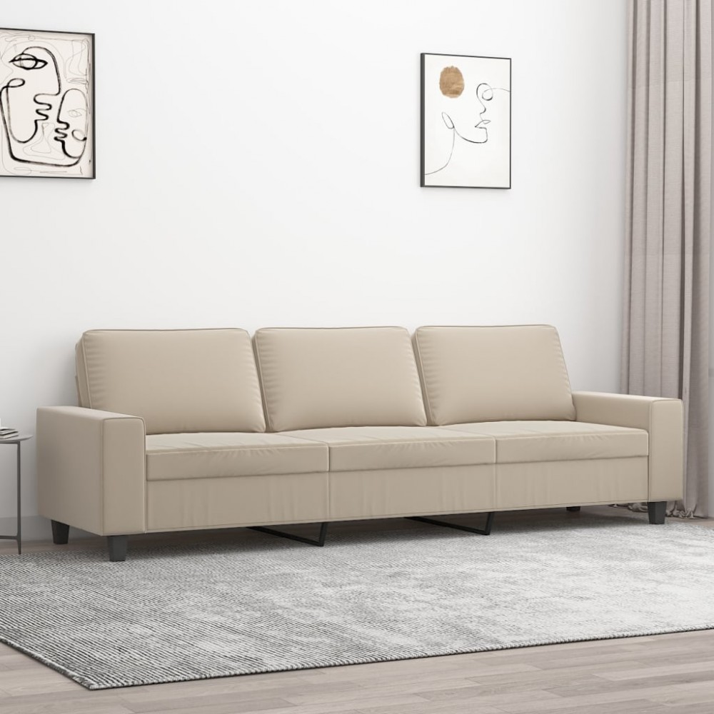 Divano a 3 Posti Crema 210 cm in Tessuto Microfibra