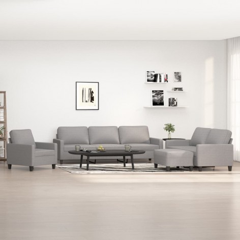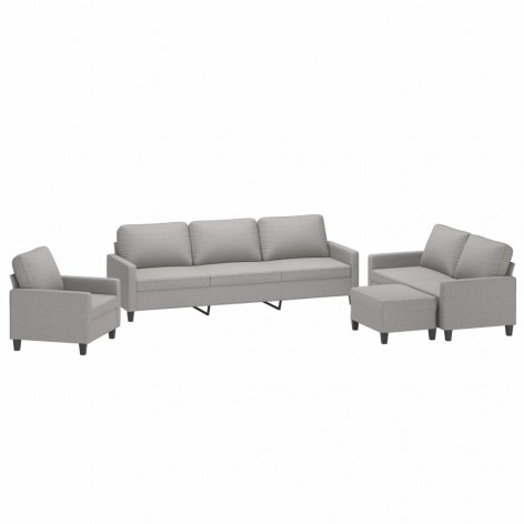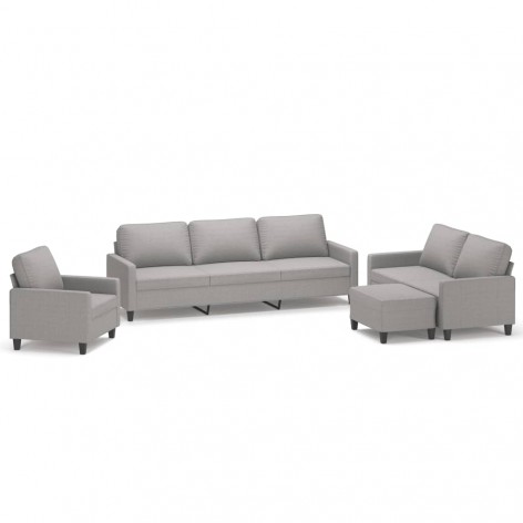 Set di Divani 4 pz con Cuscini Grigio Chiaro in Tessuto
