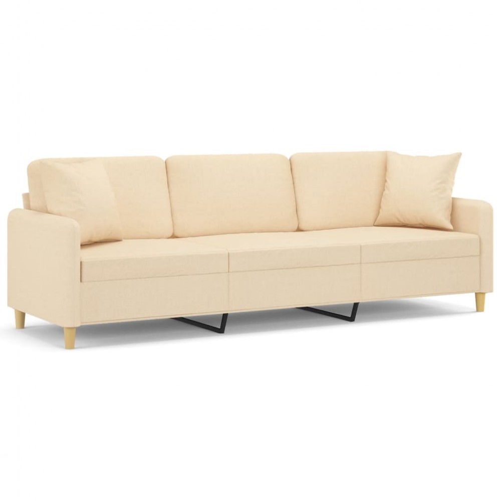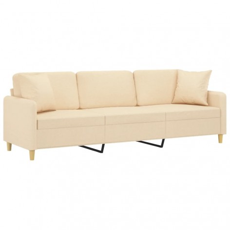 Divano a 3 Posti con Cuscini Crema 210 cm in Tessuto