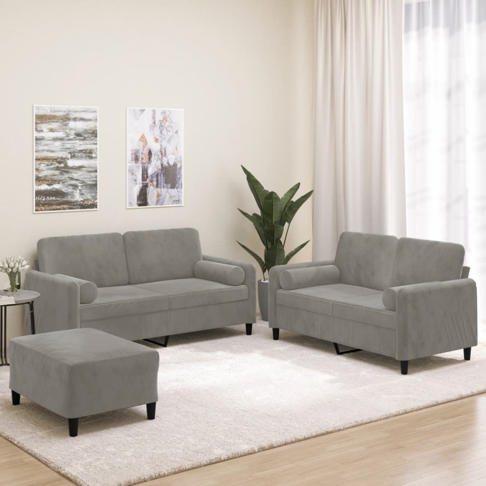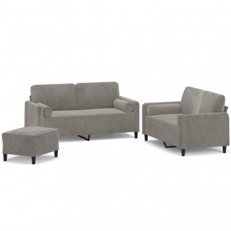 Set di Divani 3 pz con Cuscini Decorativi Grigio Chiaro Velluto