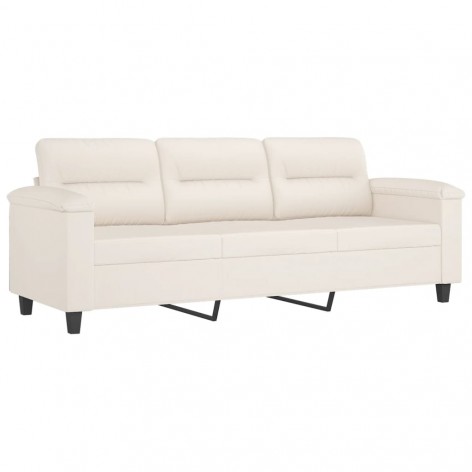 Divano a 3 Posti con Cuscini Beige 180 cm in Tessuto Microfibra
