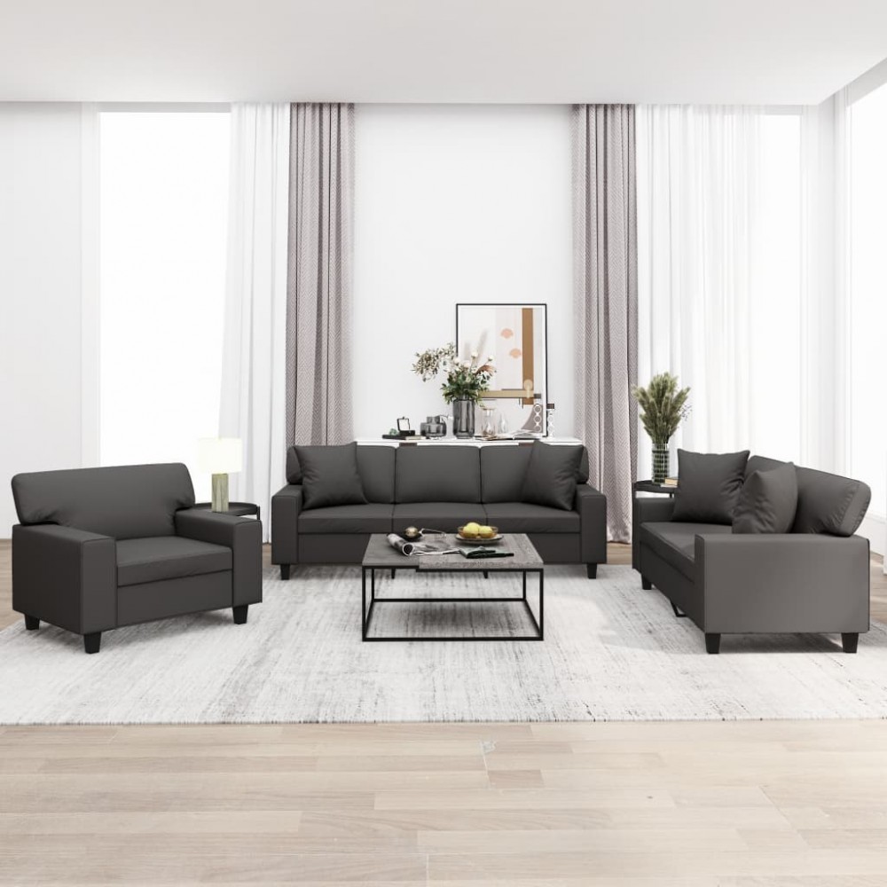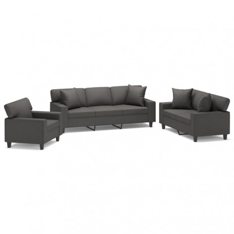 Set di Divani 3 pz con Cuscini Grigio in Similpelle