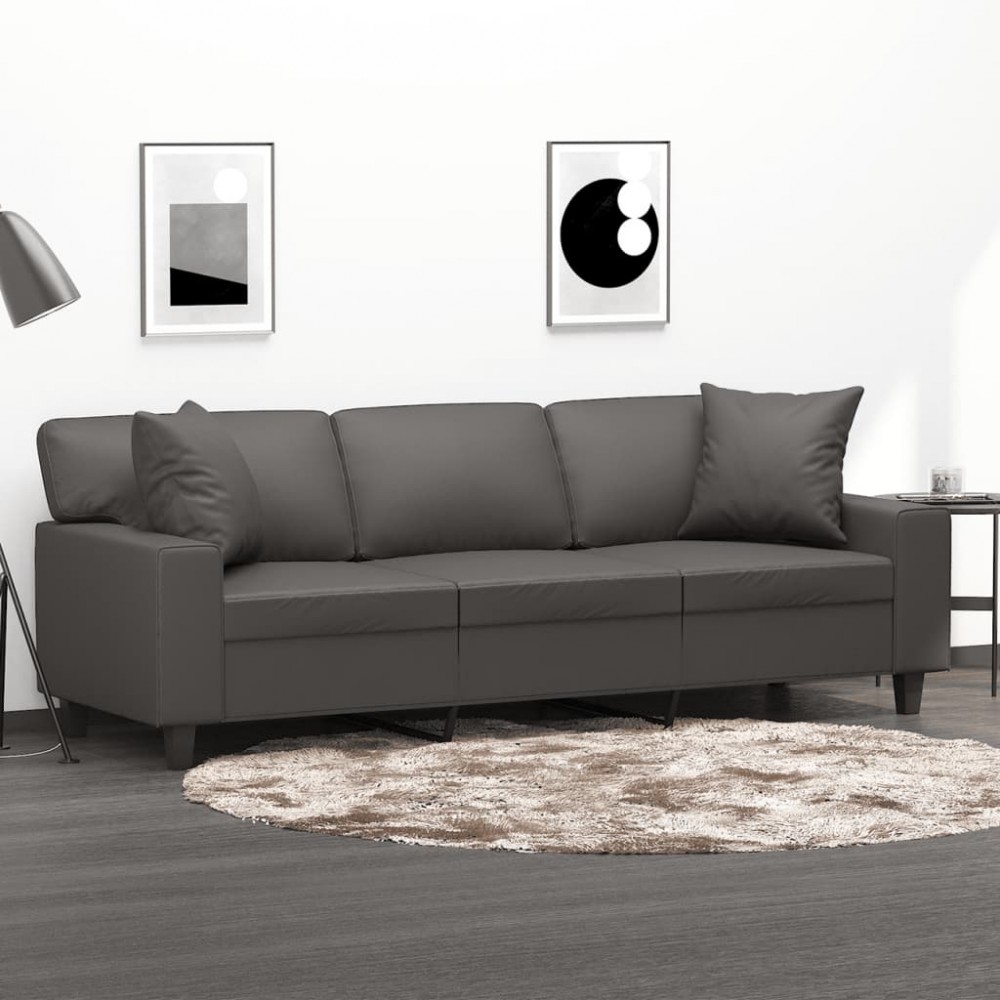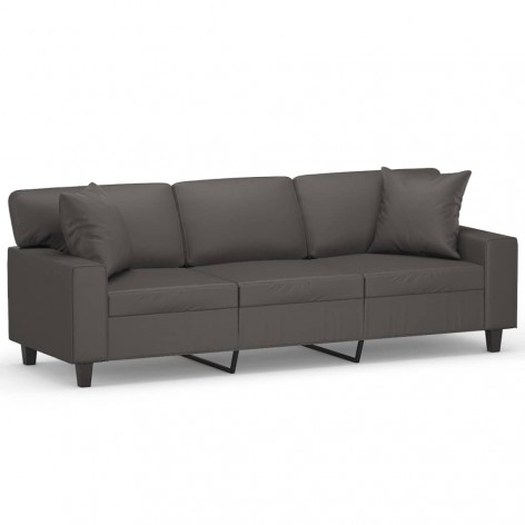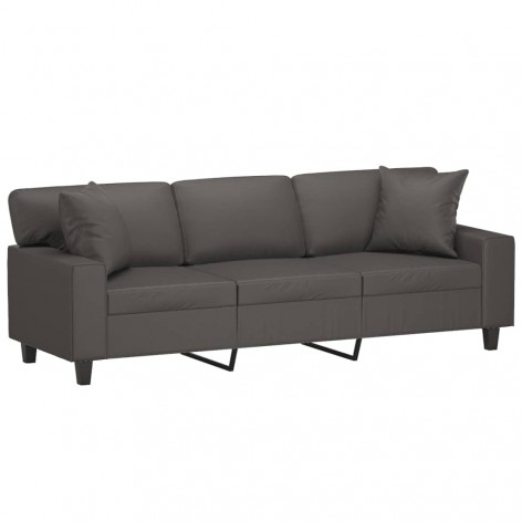 Divano a 3 Posti con Cuscini Grigio 180 cm in Similpelle