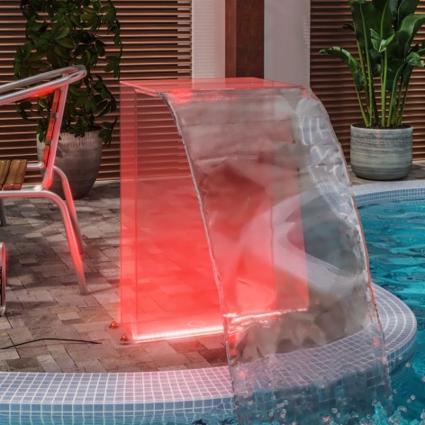 - Materiale resistente: La cascata per piscina è realizzata in materiale acrilico resistente. La struttura in acrilico è progettata per facilitare l'uso senza doversi preoccupare di macchie di ruggine sulla superficie.