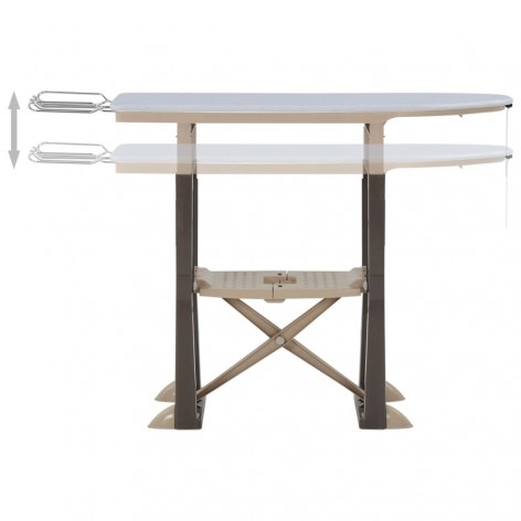 Questa tavola è realizzata in uno speciale PP, resistente alle alte temperature. È progettata con quattro piedi per garantire una migliore stabilità. Potete godervi una stiratura perfetta grazie alla sua altezza regolabile da 82 a 92 cm. L'asse è dotato di una tavola traspirante e di un ripiano per la caldaia. Quando non è in uso, potete piegarla per risparmiare spazio e può stare in piedi da solo.