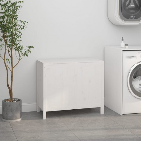 Contenitore per Bucato Bianco 88,5x44x76 cm Legno Massello Pino