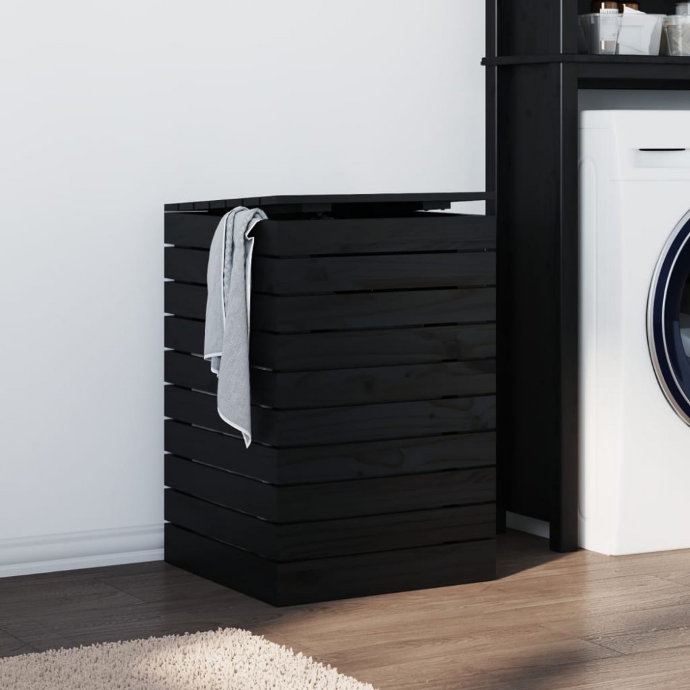 Cesto per Bucato Nero 44x44x66 cm Legno Massello Pino
