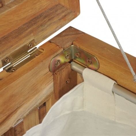 I cesti portabiancheria sono realizzati in legno di teak massello, che li rende stabili e durevoli. Una bella finitura è stata applicata ai cesti per fornire al legno un colore caldo. La struttura reticolare garantisce loro una buona areazione. Le fodere in tessuto sono rimovibili e lavabili. I cesti portabiancheria aggiungeranno un tocco di fascino rustico al vostro bagno. Il montaggio è semplice.