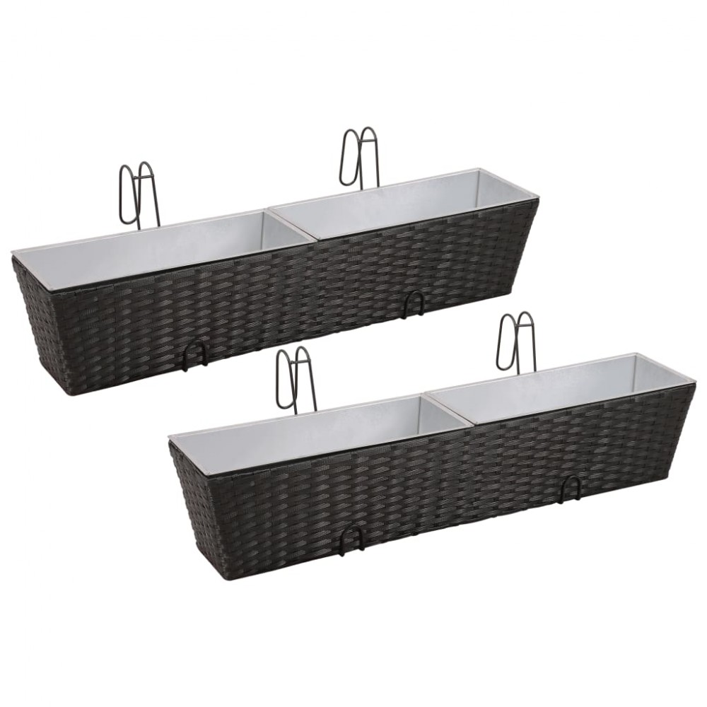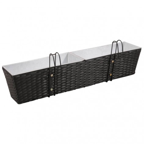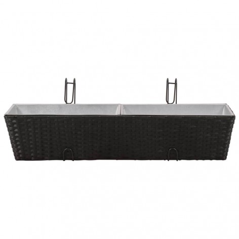 Set Fioriera Trapezoidale in Rattan 2 pz 80 cm Nera per Balcone