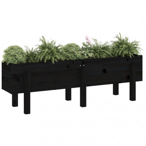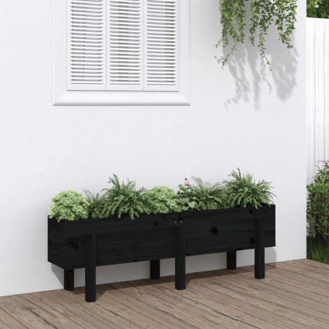 Fioriera Rialzata da Giardino Nera 121x30x38 cm Massello Pino
