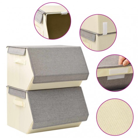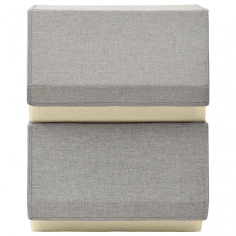 Set Scatole Impilabili con Coperchio 2pz Tessuto Grigio e Crema