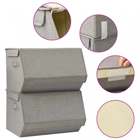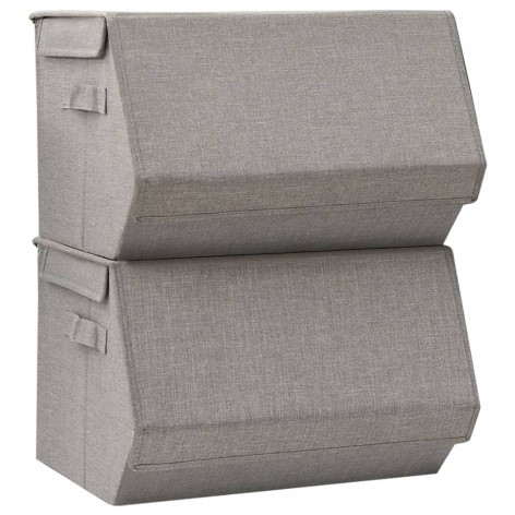 Set Scatole Impilabili con Coperchio 2 pz in Tessuto Grigio