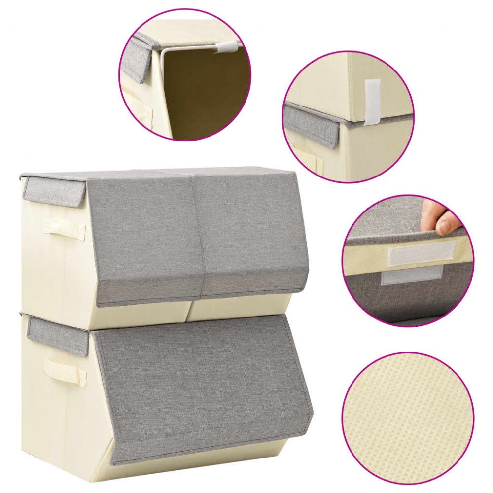 Set Scatole Portaoggetti Impilabili 3pz in Tessuto Grigio e Crema