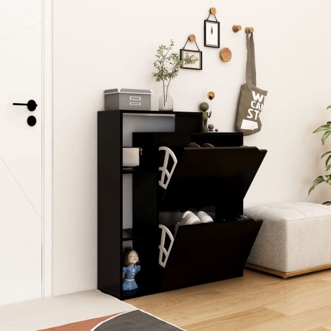 Scarpiera Nera 79,5x24x90,5 cm in Truciolato