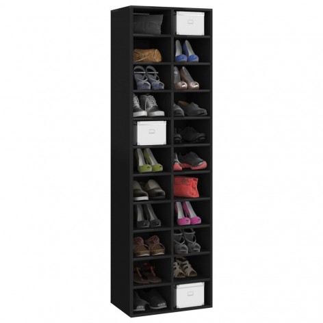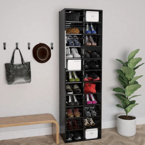 Scarpiera Nero Lucido 54x34x183 cm in Truciolato