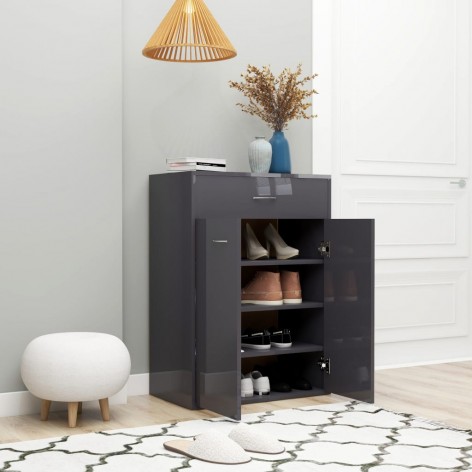Scarpiera Grigio Lucido 60x35x84 cm in Truciolato