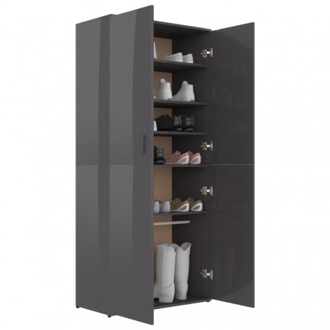Scarpiera Grigia Lucida 80x39x178 cm in Truciolato