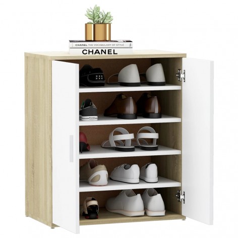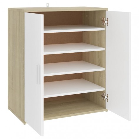 Scarpiera Bianco e Rovere Sonoma 60x35x70 cm in Truciolato