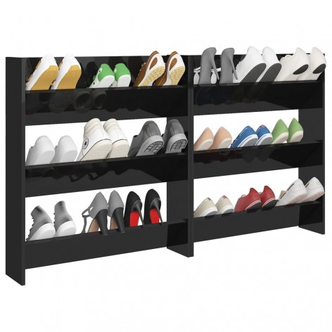 Scarpiere a Muro 2 pz Nero Lucido 80x18x90 cm in Truciolato