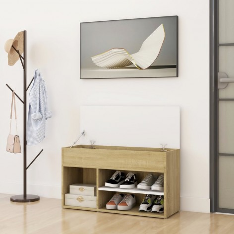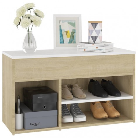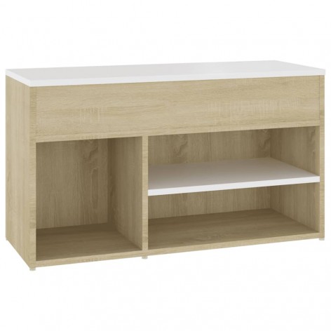 Panca Portascarpe Bianco e Sonoma 103x30x54,5 cm in Truciolato
