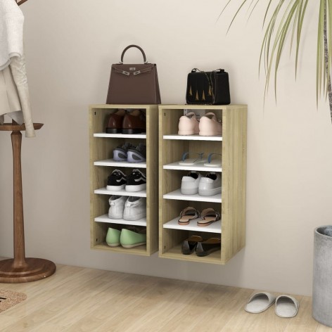 Scarpiere 2 pz Bianche e Rovere Sonoma 31,5x35x70 cm Truciolato