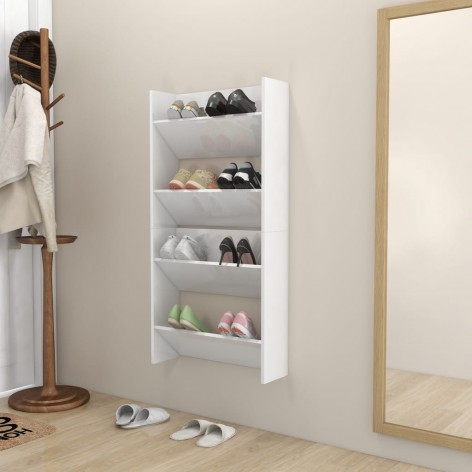 Scarpiere a Muro Bianco Lucido 2 pz 60x18x60 cm in Truciolato