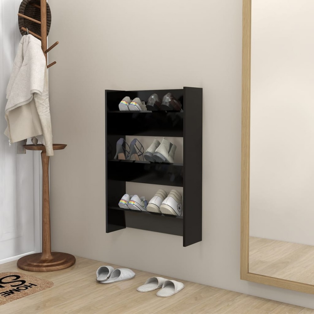 Scarpiera a Muro Nera 60x18x90 cm in Truciolato