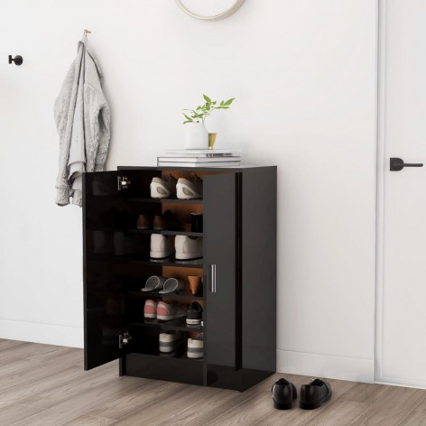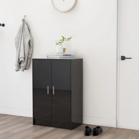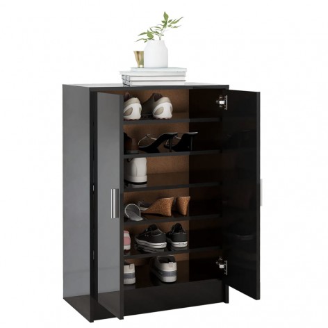 Scarpiera Nero Lucido 60x35x92 cm in Truciolato