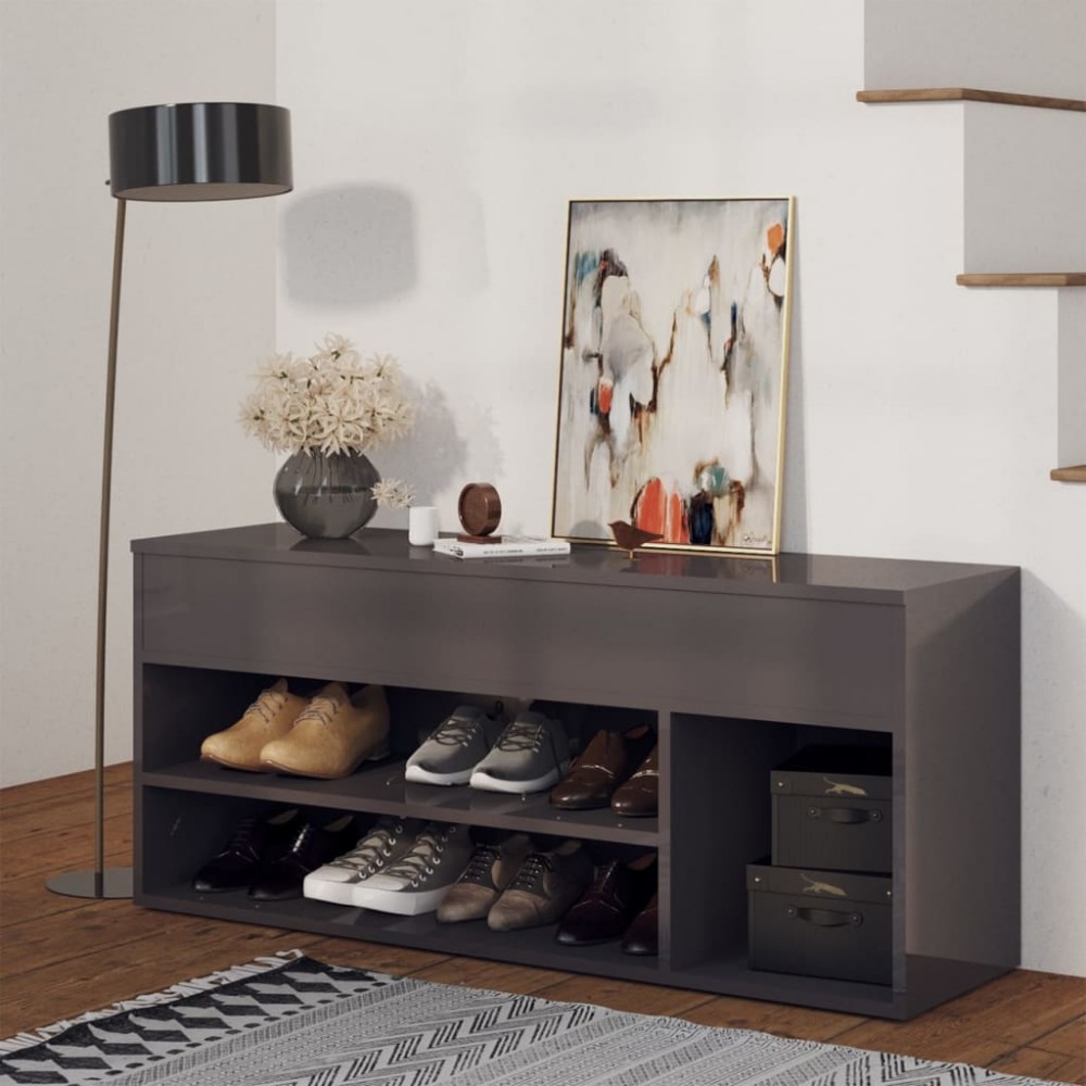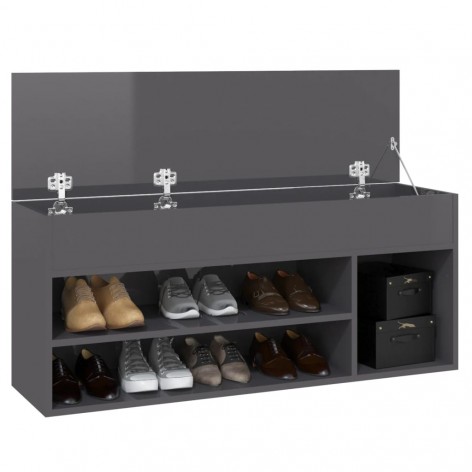 Panca Portascarpe Grigio Lucido 105x30x45 cm in Truciolato