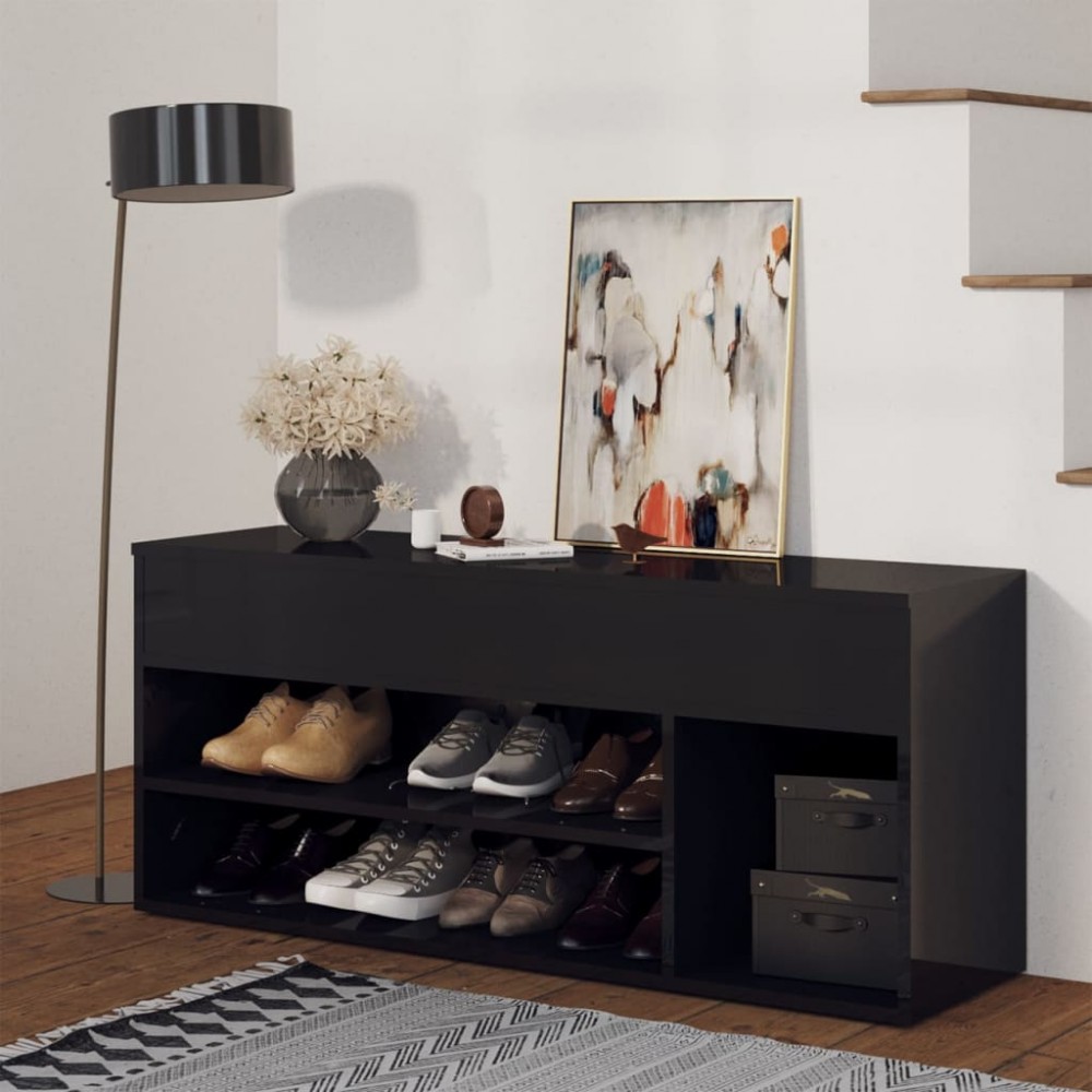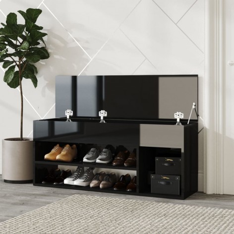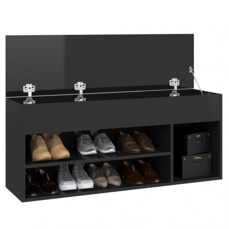 Panca con Scarpiera Nero Lucido 105x30x45 cm in Truciolato