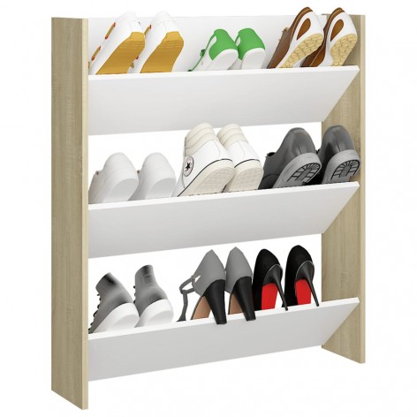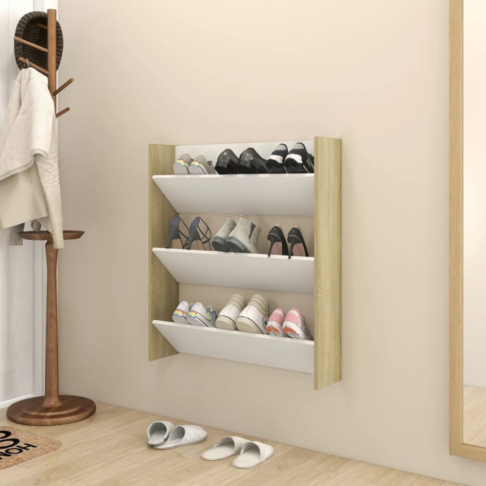 Scarpiera a Muro Bianco e Rovere Sonoma 80x18x90cm Truciolato