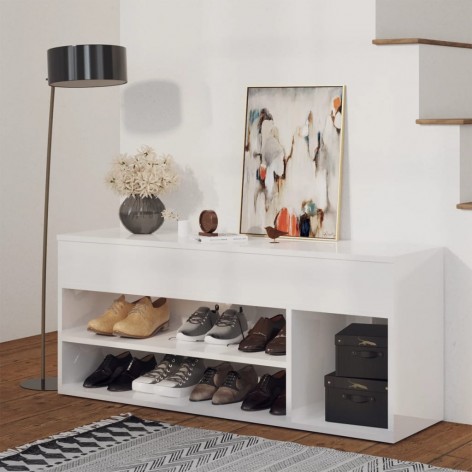 Panca Portascarpe Bianco Lucido 105x30x45 cm in Truciolato