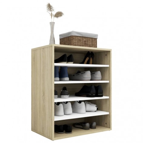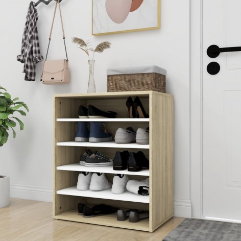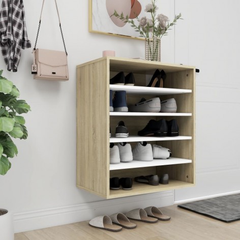 Scarpiera Bianco e Rovere Sonoma 60x35x70 cm in Truciolato