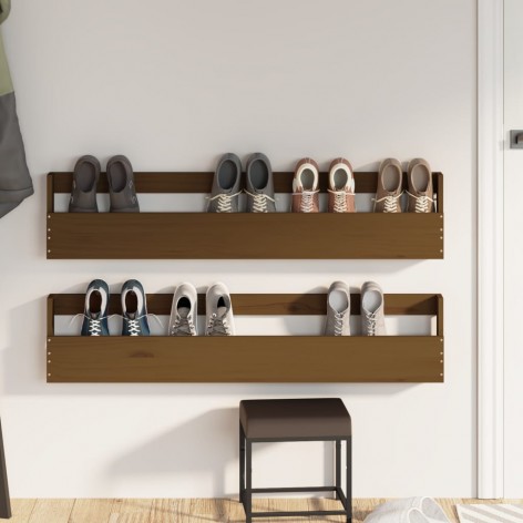 Scarpiere a Parete 2 pz Miele 110x9x23cm Legno Massello di Pino