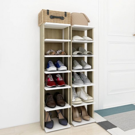 Scarpiere 2 pz Bianche e Rovere Sonoma 25x27x102 cm