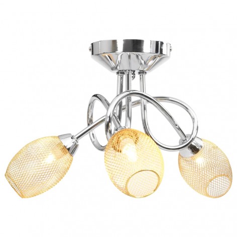 Questa lampada può essere facilmente montata su qualsiasi soffitto con una base in metallo di alta qualità. Tre tubi di metallo aggrovigliati presentano un aspetto chic. Una luce meravigliosa proviene dalle sfumature dorate a reticolo, illuminando ogni angolo della stanza. Questa esclusiva lampada da soffitto garantisce un aspetto distinto per la sua affascinante semplicità.