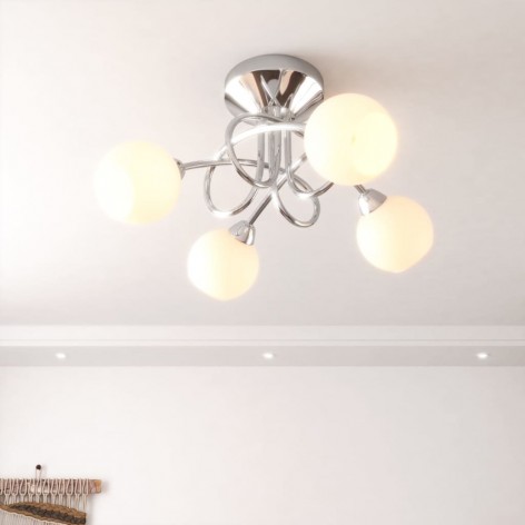 Questa esclusiva lampada da soffitto, con 4 paralumi bianchi rotondi di ceramica, è caratterizzata da un design moderno e aggiunge un aspetto straordinario al vostro ambiente.