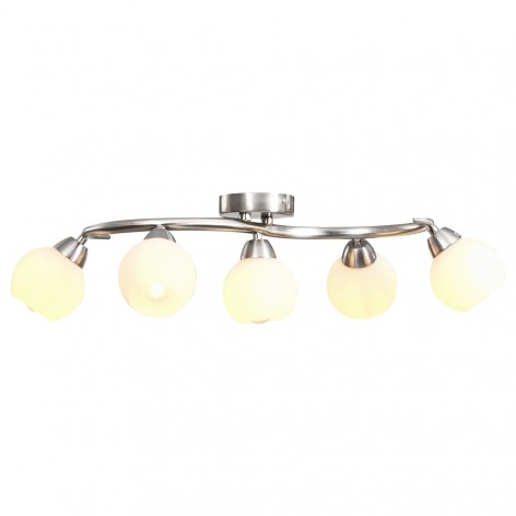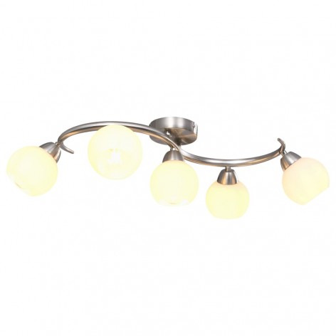Lampadario con Paralumi in Ceramica 5 Lampadine E14 Bianco a Coppa