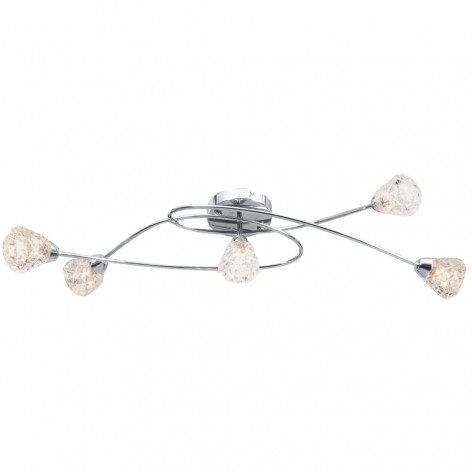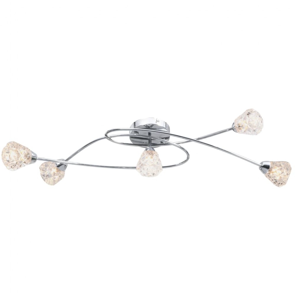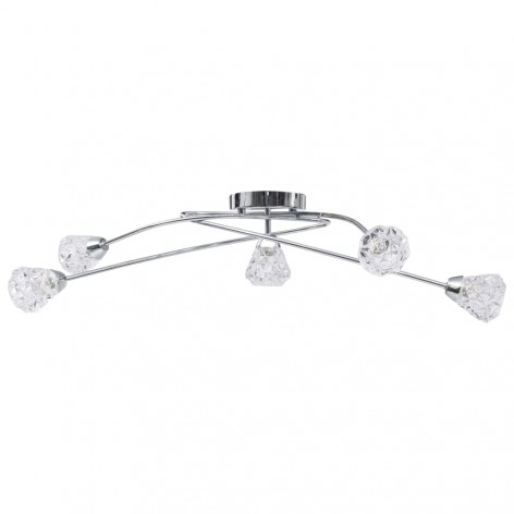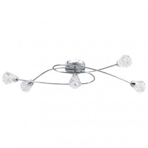 Questa esclusiva lampada da soffitto dal design moderno include 5 paralumi in vetro. La finitura cromata conferisce a questa lampada uno stile contemporaneo perfetto per un soggiorno o una camera da letto con qualsiasi stile.