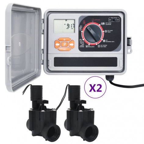 Il temporizzatore per l'irrigazione può controllare 4, 6, 9 o 11 valvole. Il regolatore di irrigazione dispone di 6 programmi di irrigazione e ogni programma ha la sua ora di inizio, ora di fine e tempo di esecuzione. Il programma di irrigazione può essere impostato per ogni giorno della settimana, con un determinato orario di inizio e di fine. Il tempo di esecuzione può variare da 1 minuto a 12 ore e 59 minuti in base alle proprie impostazioni. Il computer per l'irrigazione da giardino è alimentato a corrente alternata e può essere facilmente azionato con con il semplice utilizzo di un comando a rotazione e un pulsante per la selezione e la conferma dei dati. È presente una interfaccia per il collegamento di un sensore di pioggia o per un sensore di umidità (non inclusi in consegna) per evitare l'irrigazione e massimizzare il risparmio idrico durante i giorni di pioggia o quando il terreno è troppo bagnato. È inoltre necessaria una batteria alcalina da 9 V (non inclusa) per mantenere l'orologio digitale visualizzato sullo schermo e la memoria dei parametri registrati.