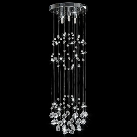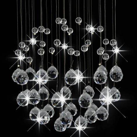 - Colore: Argento (base lampadario) + trasparente (gocce)