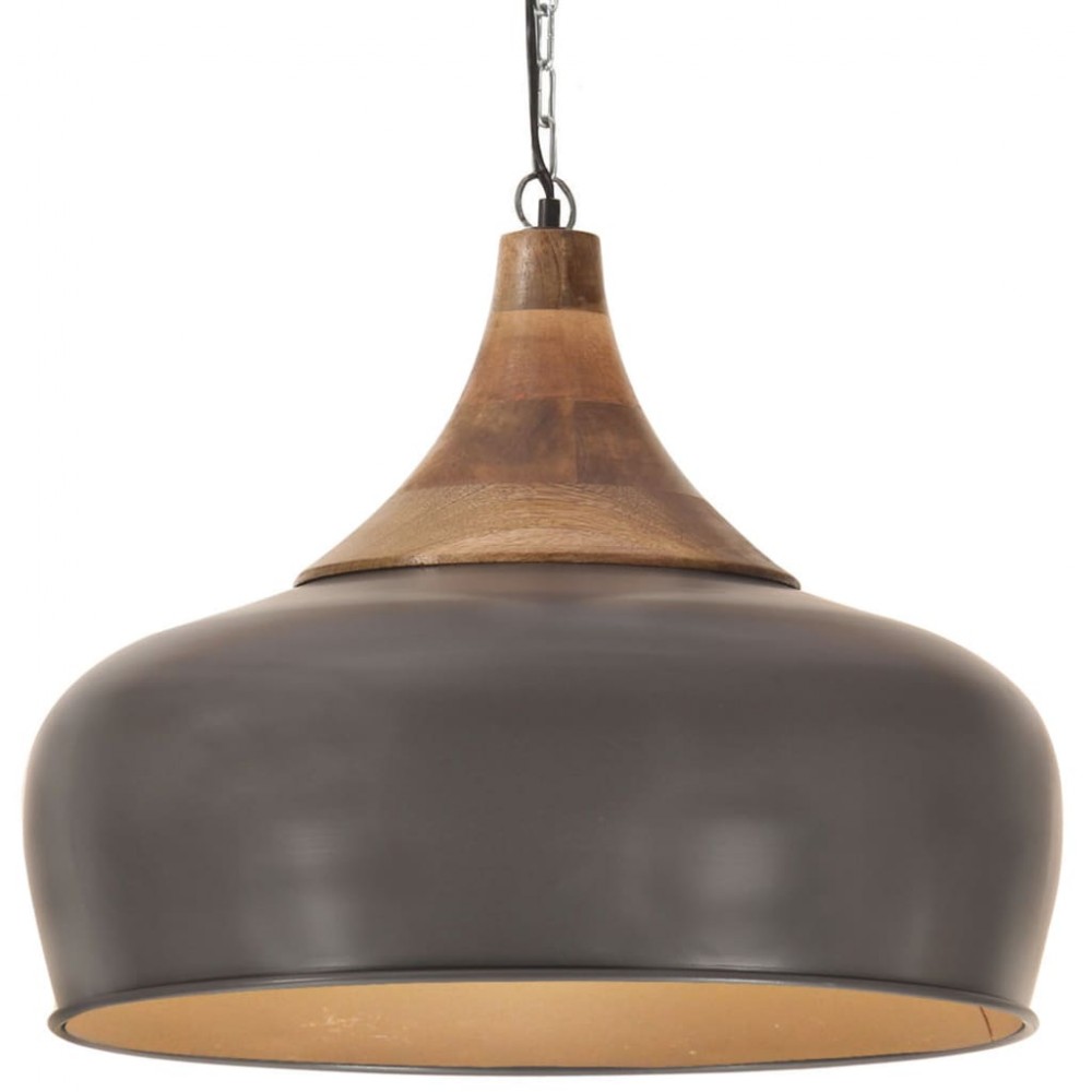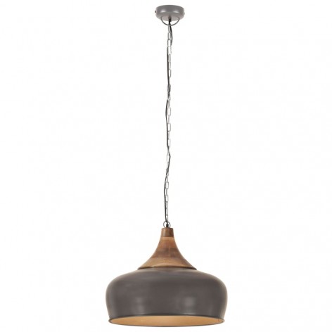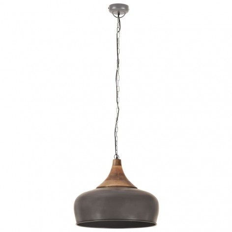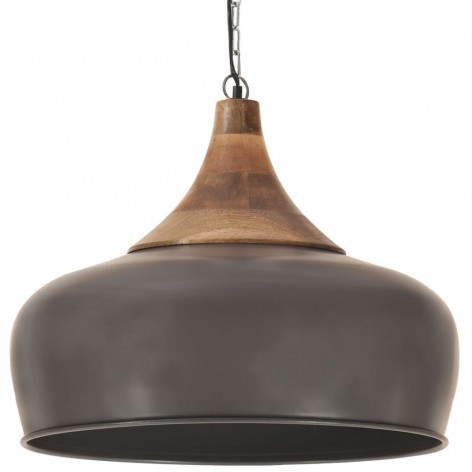Lampadario Industriale Grigio Ferro e Legno Massello 45 cm E27